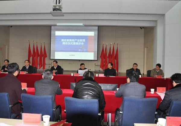 湖北省教育廳副廳長歐陽建平主持聘任儀式,省委人才辦專職副主任劉仲初宣讀了《省教育廳關(guān)于公布首批湖北產(chǎn)業(yè)教授的通知》,省委高校工委書記、省教育廳廳長劉傳鐵等為23名獲聘產(chǎn)業(yè)教授頒發(fā)了證書,14所聘任高校校領(lǐng)導為產(chǎn)業(yè)教授頒發(fā)了聘書。